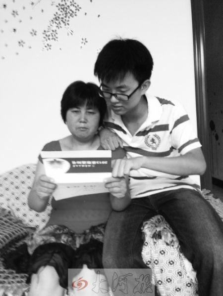 馮昊怡的母親激動地看著兒子的錄取通知書