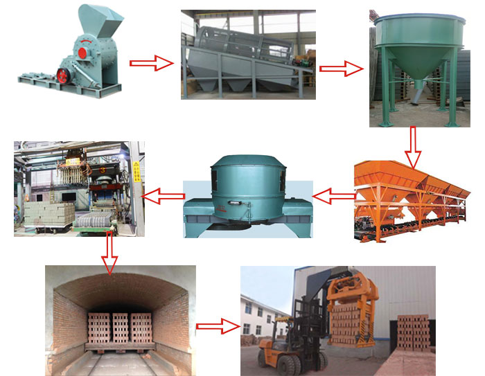 利用液壓磚機來生產煤矸石磚是我公司根據真空磚機制磚的種種缺陷,結合國內具體國情研制出的簡單而又高效的制磚工藝。首先將頁巖、煤矸石等進行破碎處理,然后采用科學配比用輪碾機攪拌,攪拌好的混合料選用全自動液壓磚機壓制成型,成型后的磚坯無需干燥由全自動碼磚機碼垛,然后放到窯車上入窯燒結,產品包裝檢驗合格后方可出廠。
