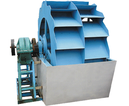洗砂機工作時,電機通過三角帶、減速機、齒輪減速后帶動葉輪緩慢轉動,砂石有給料槽進入洗槽中,在葉輪的帶動下翻滾,并互相研磨,除去覆蓋砂石表 面的雜質,同時破壞包覆砂粒的水汽層,以利于脫水;同時加水,形成強大水流,及時將雜質及比重小的異物帶走,并從溢出口洗槽排出,完成清洗作用。干凈的砂 石由葉片帶走,最后砂石從旋轉的葉輪倒入出料槽,完成砂石的清洗作用。